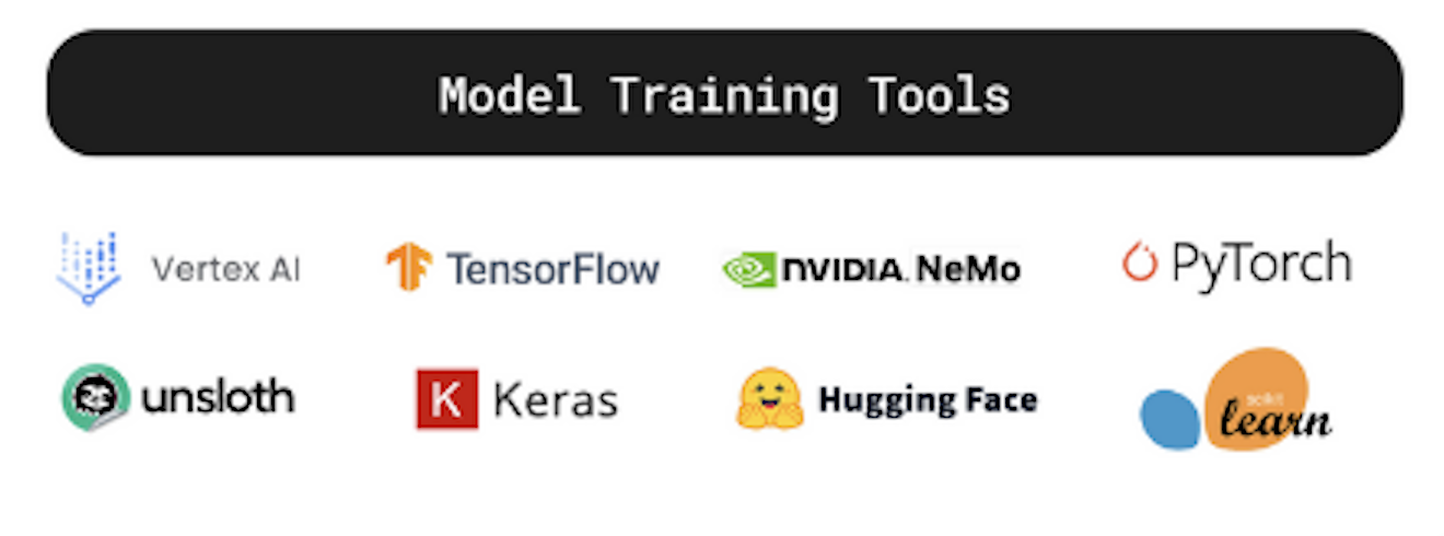 Vertex AI, TensorFlow, NVIDIA NeMo, PyTorch, Unsloth, Keras, Hugging Face, Scikit-Learn