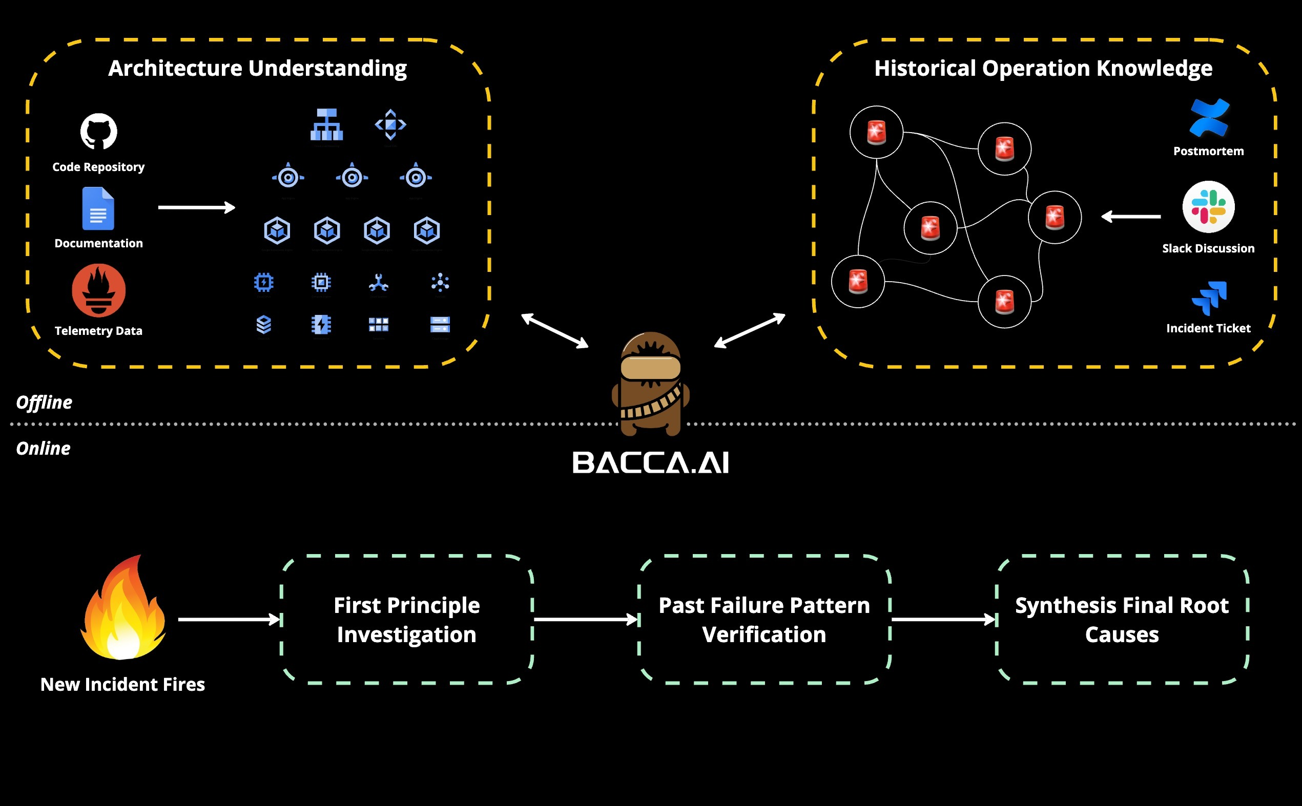 A static knowledge graph quickly becomes stale. The bacca agent addresses this through continuous learning. It observes every new incident in real time, analyzing how the human team diagnoses and resolves the issue—what commands they run, what metrics they examine, and what conclusions they reach.